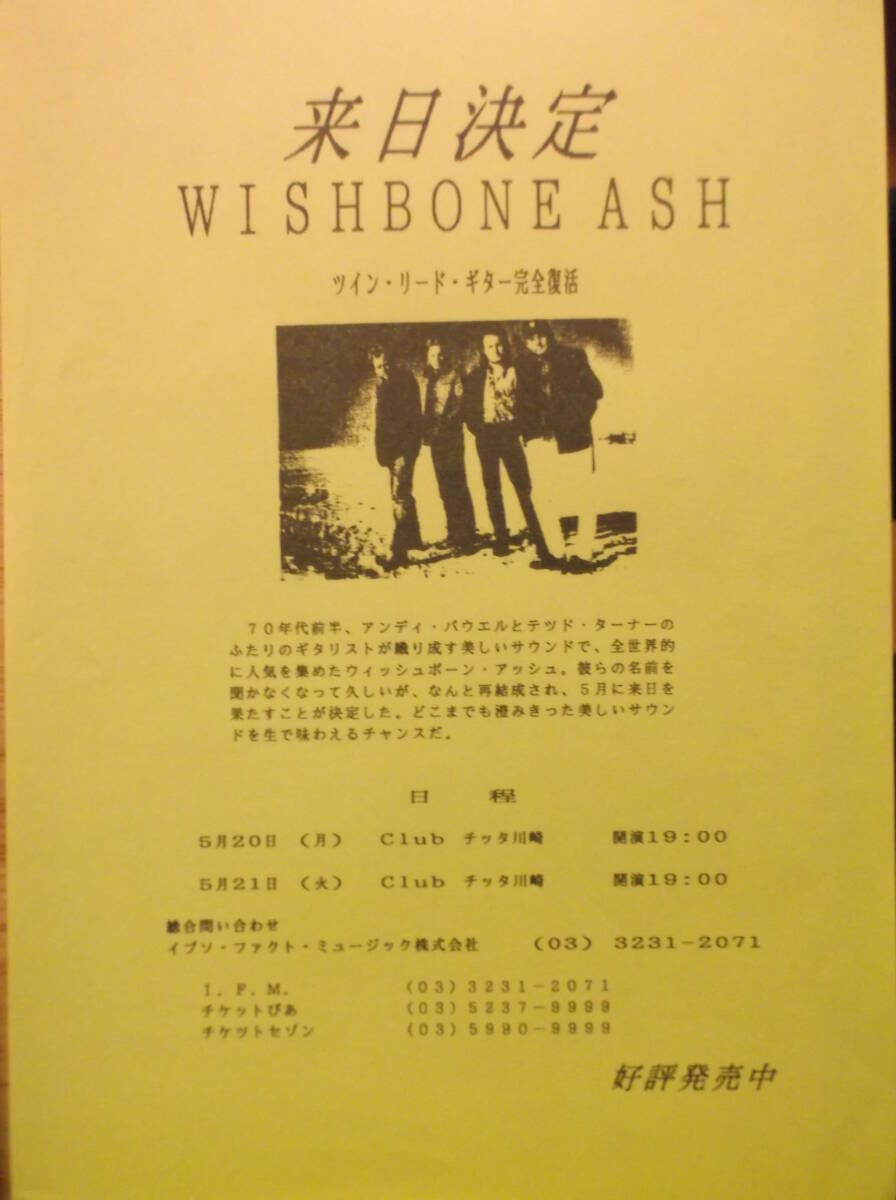 - 1991年 Wishbone Ash 来日決定 ツイン・リード・ギター完全復活 ウィッシュボーン・アッシュ アンディ・パウエル テッド・ターナー本