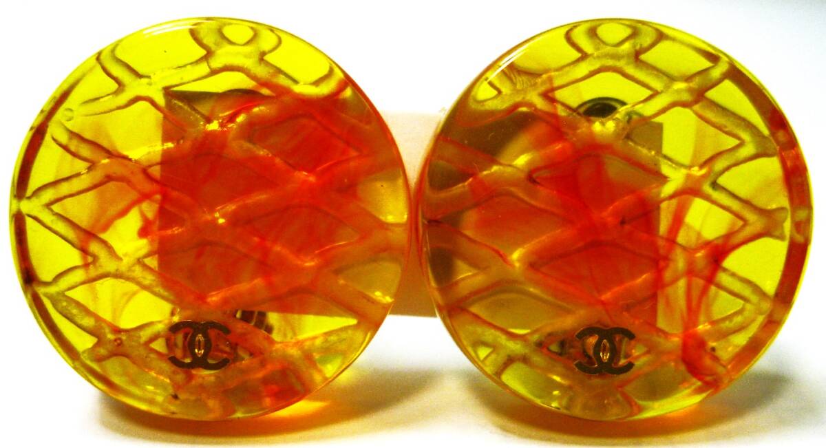 - 【東京 谷中 質屋おぢさん】美品 激レア ヴィンテージ シャネルCHANELイヤリング丸型オレンジ イエロー