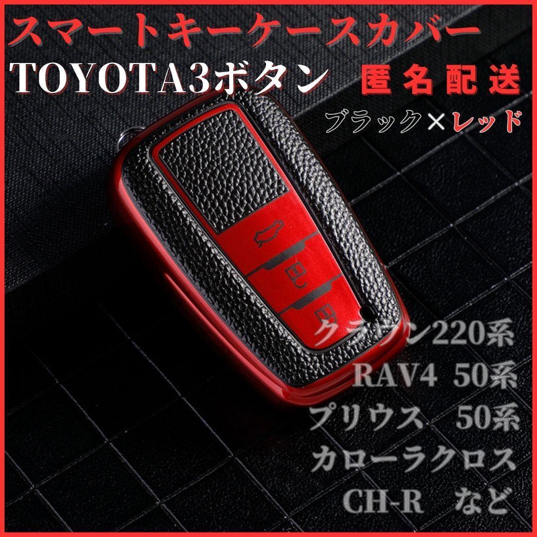 - キーケースプリウス50系クラウン220系 RAV4 50系プラド150系などスマートキーキーカバー全面保護3ボタン黒赤