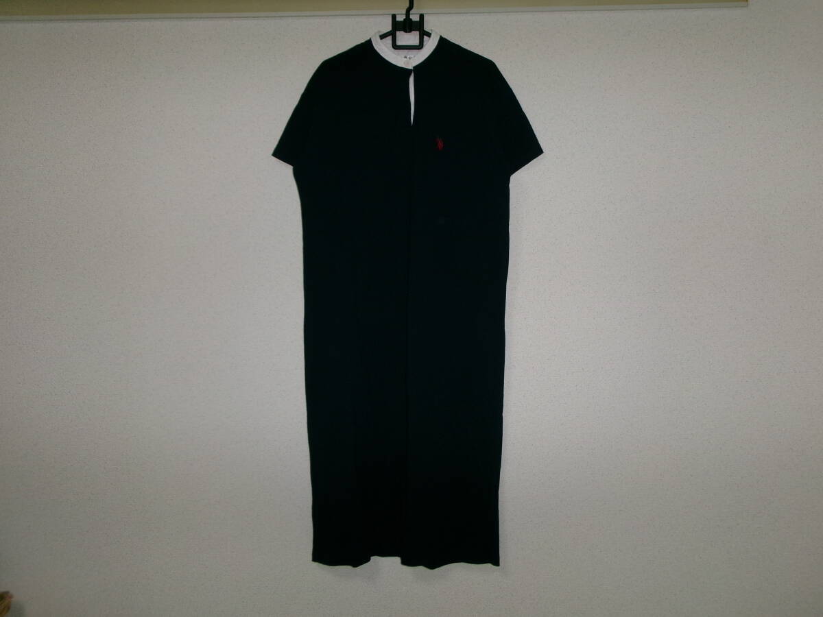 > U.S.POLO ASSN.ユーエスポロアッスン☆黒に近い濃いめネイビー紺のポロシャツ風半袖ワンピース☆ゆったり♪ロング丈☆Fサイズ☆美品