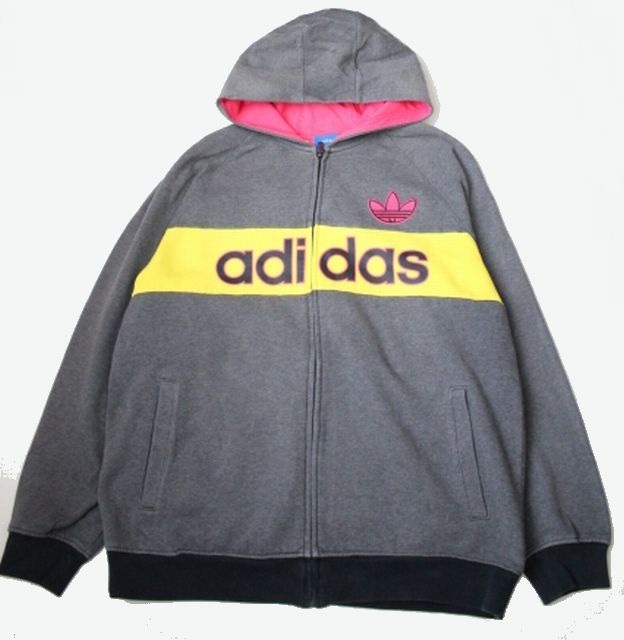 > 【adidas】アディダス フルジップパーカー フーディー スポーツブランド グレー (L) 古着 トレーナー トレフォイル