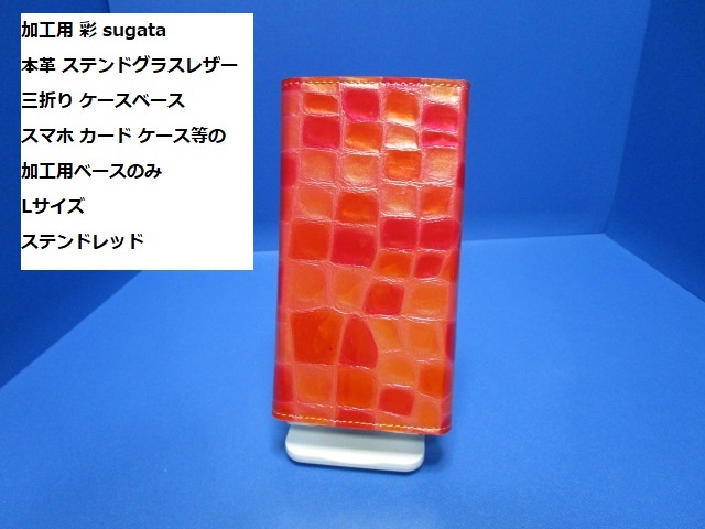 - 加工用 彩 sugata 本革 ステンドグラスレザー 三折り ケースベース スマホ カード ケース等の加工用ベースのみ Lサイズ ステンドレッド ★