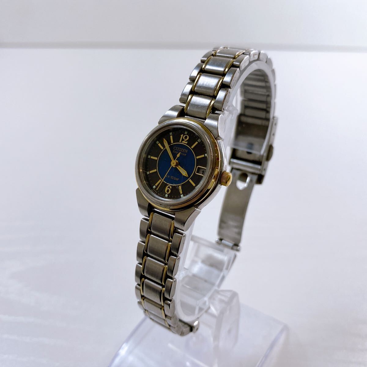- 317【中古】CITIZEN Eco-Drive E011-S027152 シチズン エコドライブ レディース腕時計 文字盤 ブラック/ブルー 動作確認済み 現状品