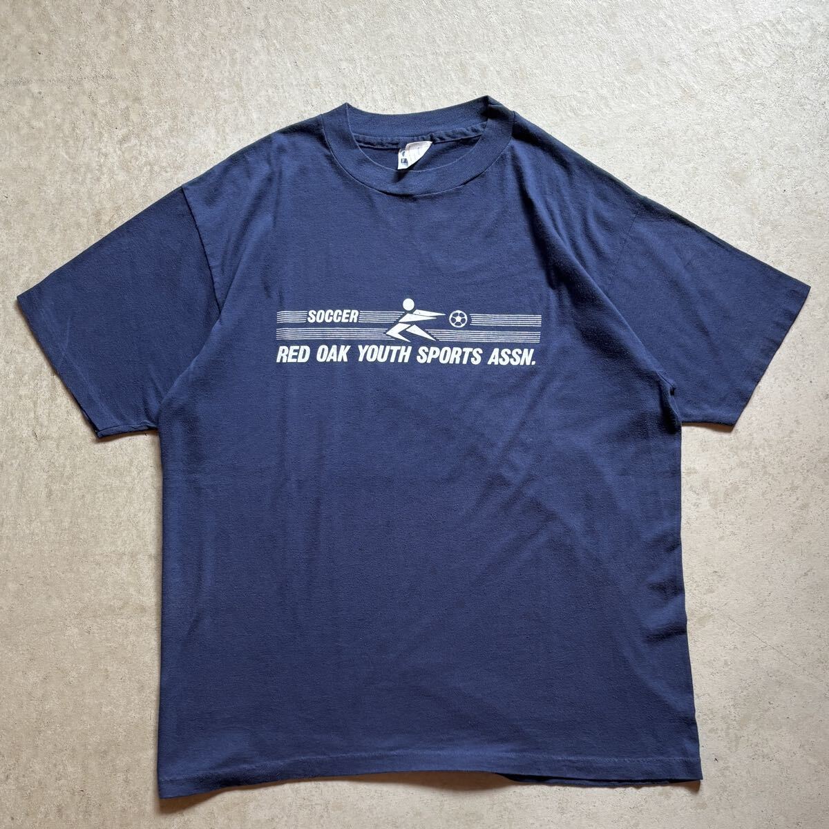 - 【USA製】90s Hanes ヘインズ 半袖 Tシャツ Tee クルーネック メンズ XL 紺/NAVY アメリカ製 ロゴ プリント vintage 古着 USED 正規品