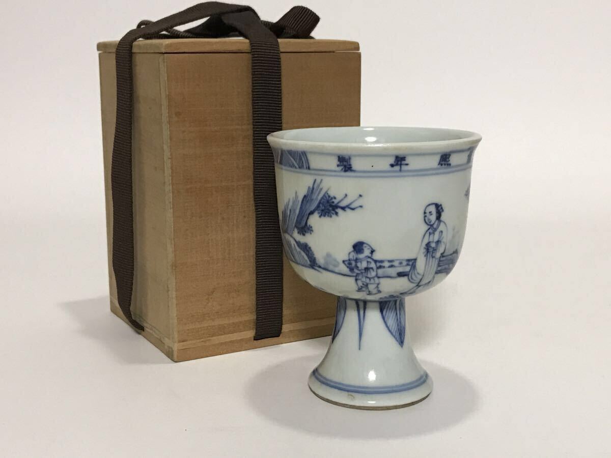 - 中国美術 清 青花染付 山水人物文壺 康熙年製 款 箱 時代 唐物