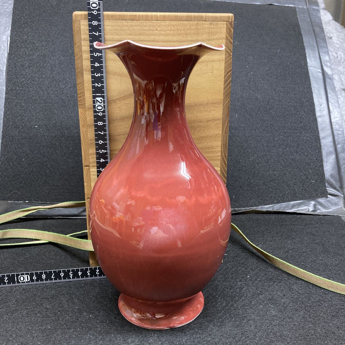 - 野中春甫造 辰砂 花入 共箱付き高さ約26センチ 径約14センチ