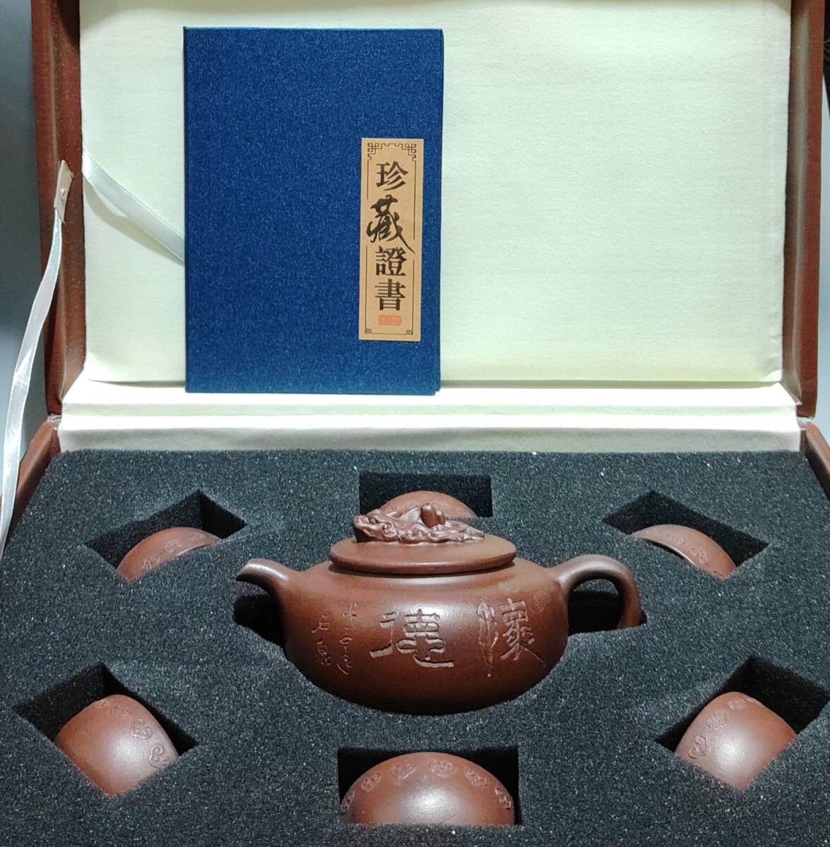- 蔵友旧蔵出 紫砂壺 伏龍套壺 徐漢棠款 原礦老紫泥 茶杯六點同出 箱付 茶道品 煎茶道具 文房賞物 希少珍品 中国古玩 中国古美術品