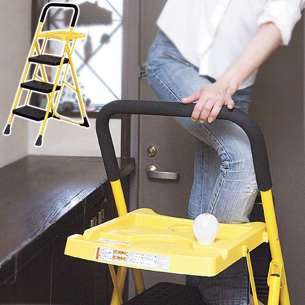 > 脚立 折り畳み 3段 折りたたみ 滑り止め トレーつき 洗車 使いやすい 丈夫 頑丈 スチール製 金属 軽量 トレー付脚立3段