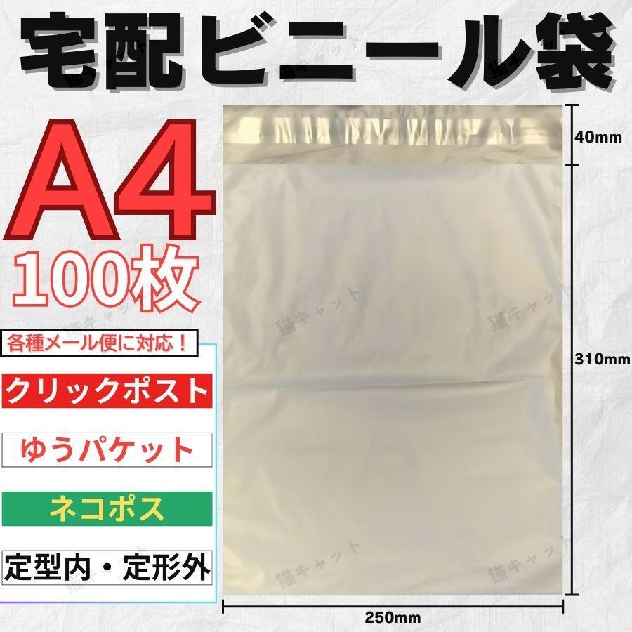 - 【100枚】T-A4 宅配 ビニール袋 テープ付 宅急便 郵便 封筒 ラッピング 梱包 普通郵便 ネコポス ゆうパケット クリックポスト 防水 ポリ袋