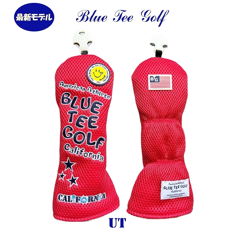 > ■7オークション♪【UT:レッド】ブルーティーゴルフ【メッシュ スマイル】ユーティリティ用ヘッドカバー BLUE TEE GOLF DHC-007 送料無料
