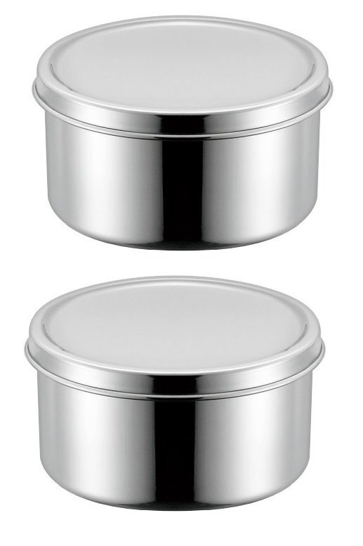 > ★丸型調味料入16cm(容量約1.6L)蓋ツマミ無2個ステンレス18-8(SUS304)日本製新品