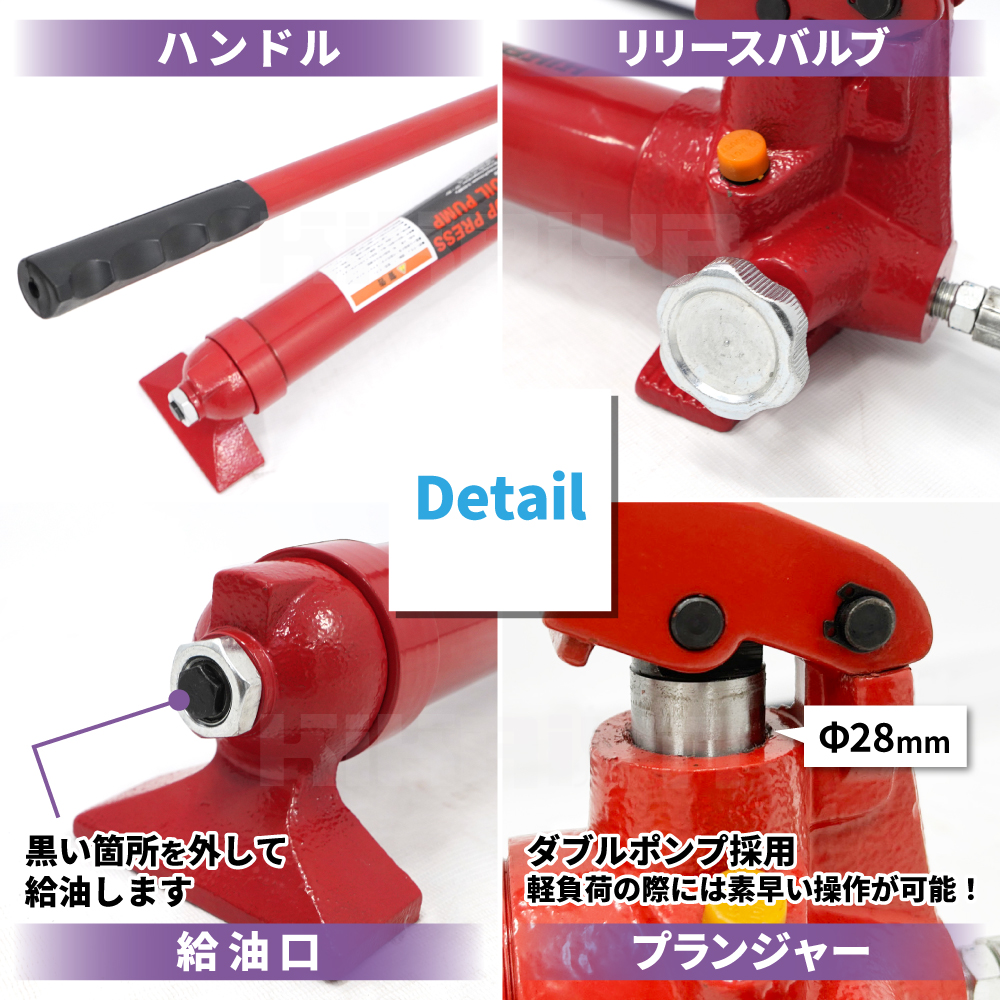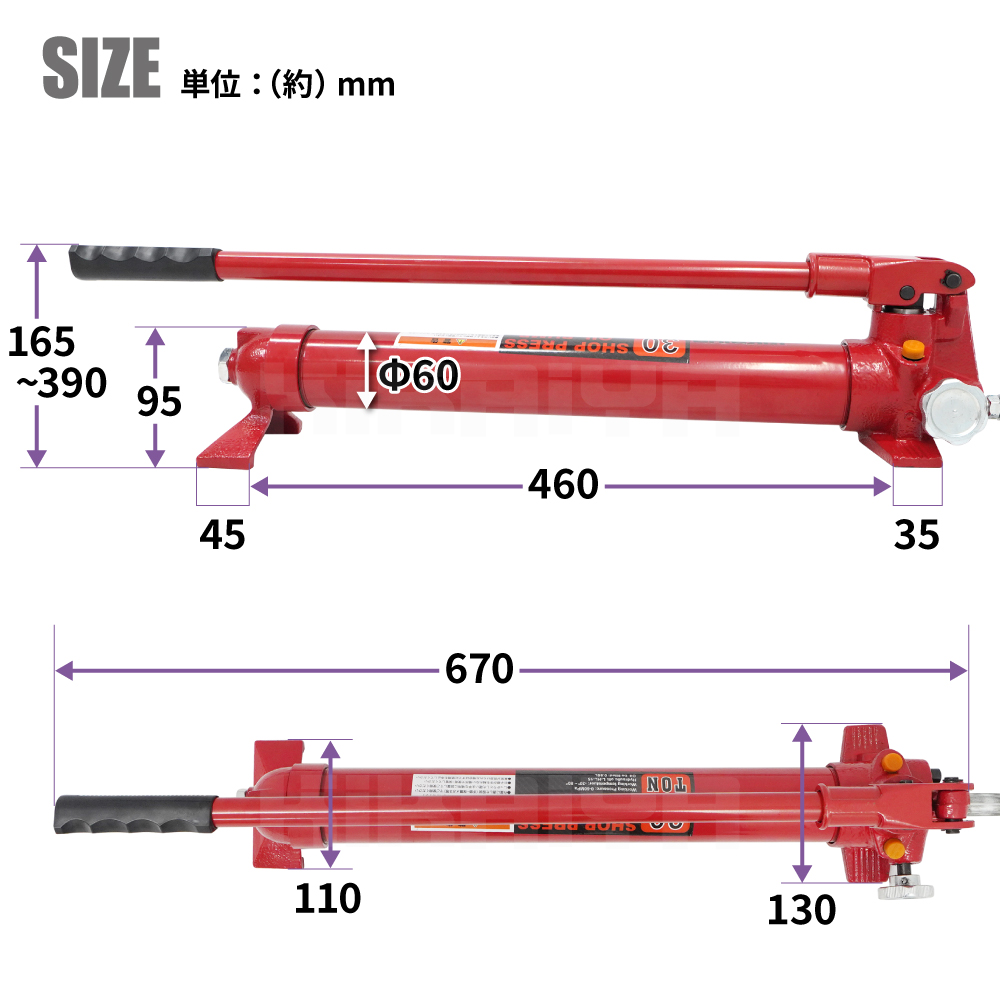- 油圧ポンプ 大 手動式 油圧ホース付 最高使用圧力60Mpa 容量800cc KIKAIYA