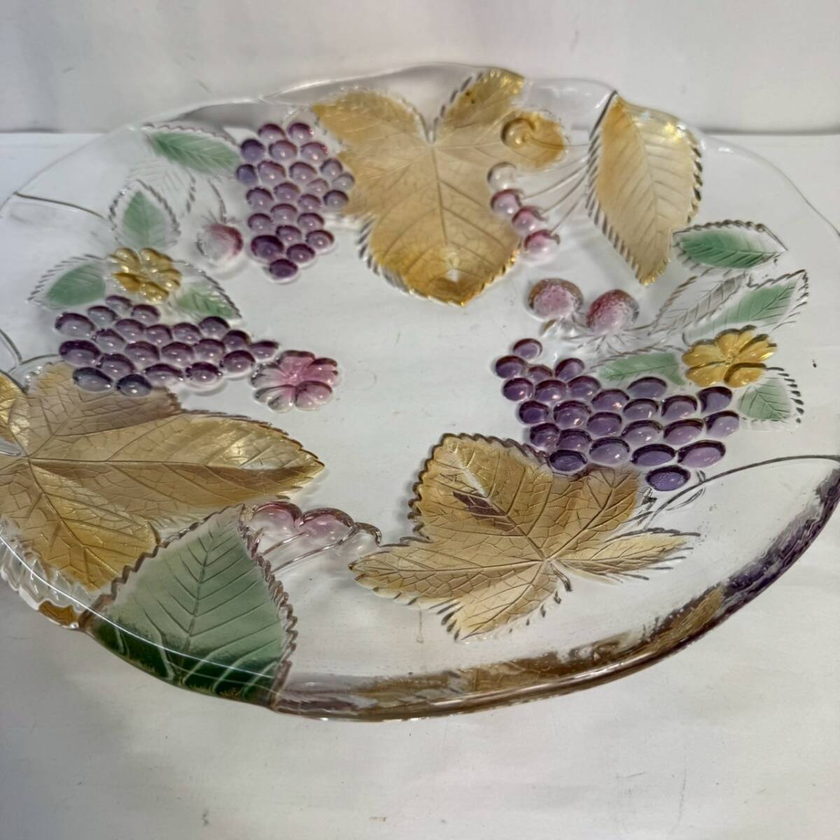> 大皿 ぶどう ブドウ 葡萄 プレート 盛り皿 丸皿 平皿 ガラス 硝子 パーティー 食器 インテリア キッチン 料理 長期保管品 V2m R7901o