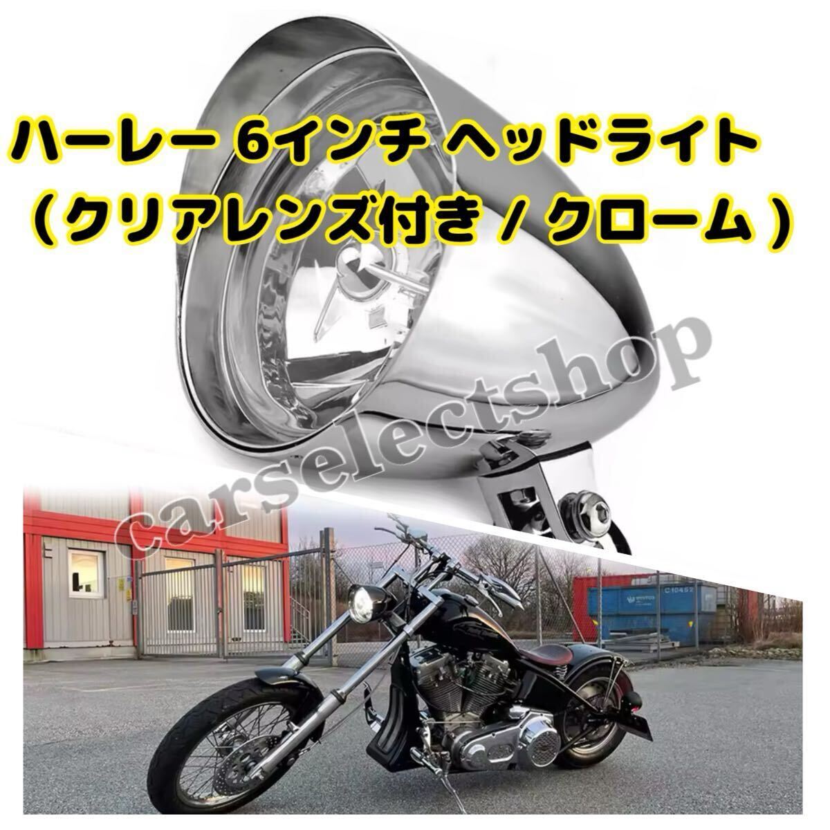 - 修理やカスタムに◆6インチ◆ハーレー ブレットヘッドライト チョッパー ニュースクール ビッグドッグ クローム仕上げ×オール金属製 新品