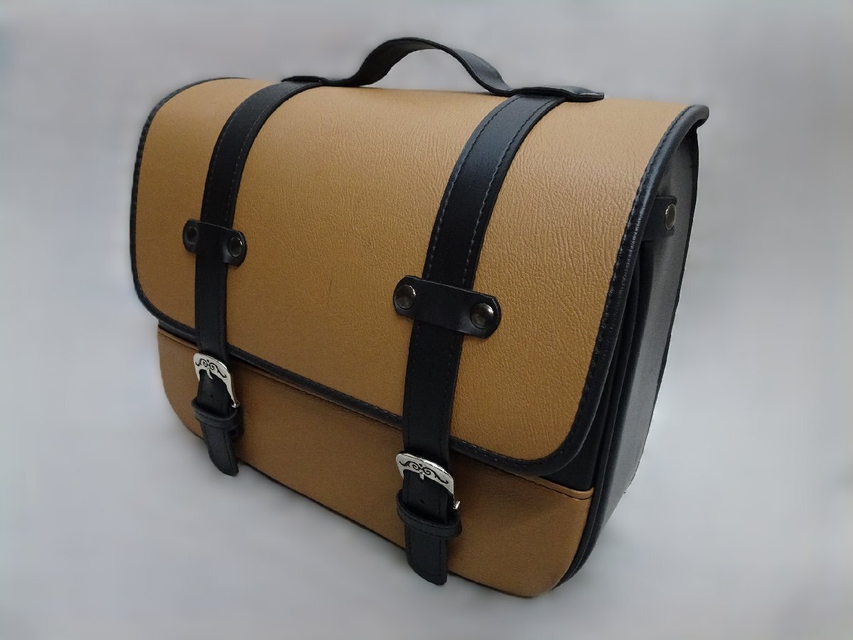 - NEW☆ バイカラー バイク用サイドバック ワイドシングル 10Lサイズ ビジネス ベルトバックル モカブラウン/黒 ベージュ系