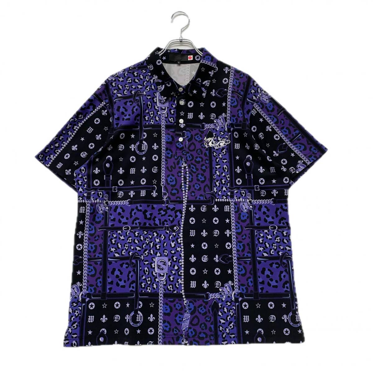 - coco 中古 ダンスウィズドラゴン メンズ 半袖ポロシャツ 5(3L)紫 ヒョウ柄 チェーン柄スカーフプリント レターパックプラス発送可 K5915