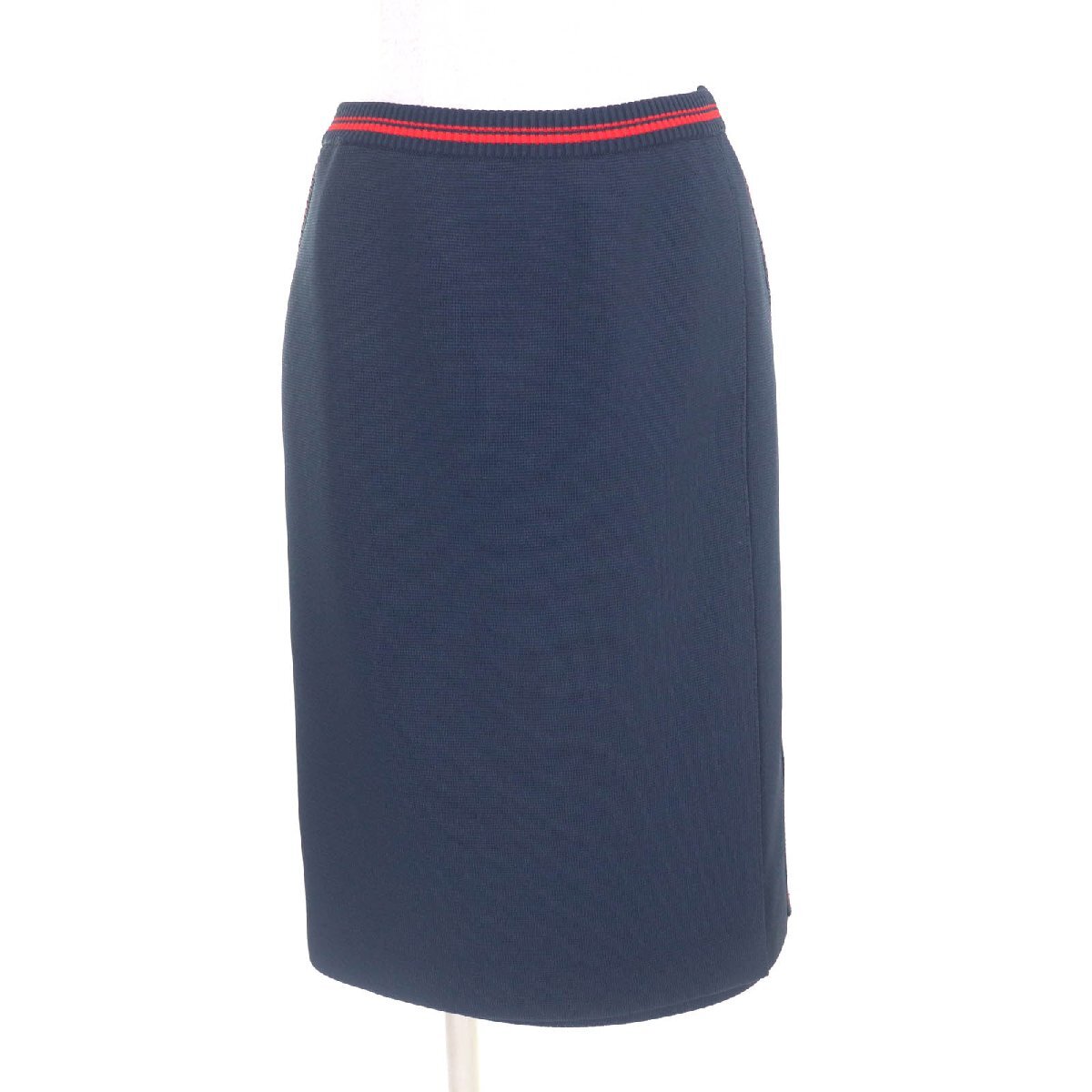 - 極美品★MIUMIU ミュウミュウ 2020年製 MMG350 サイドライン 膝丈 スカート ボトムス ネイビー レッド 38 イタリア製 正規品 レディース