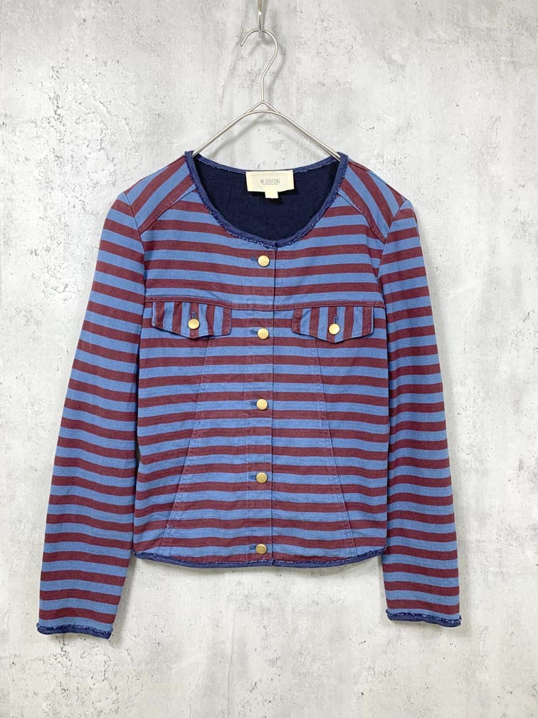 > ゆうパケットOK MAURO GRIFONI マウログリフォーニ 12-010-510-2928-1-0 ボーダー ノーカラー ジャケット size40/青×赤 ■■