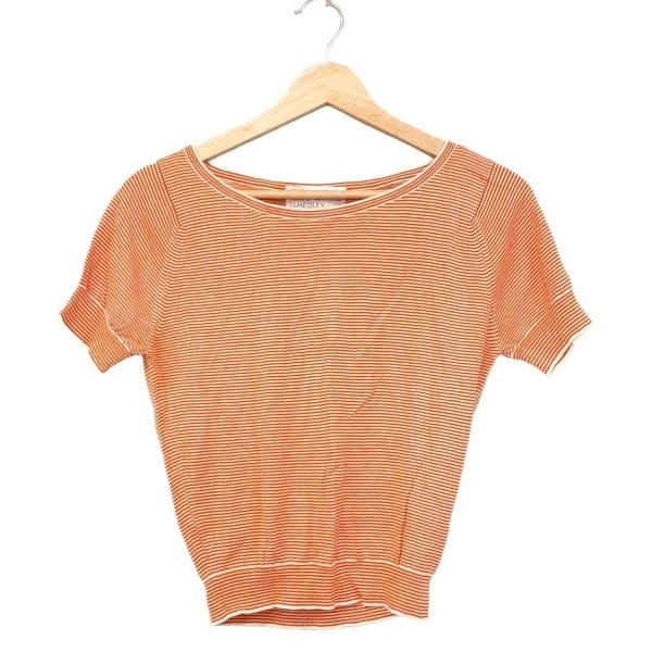 - ジョンスメドレー JOHN SMEDLEY 半袖カットソー サイズSML - オレンジ×アイボリー レディース ボーダー 美品 トップス