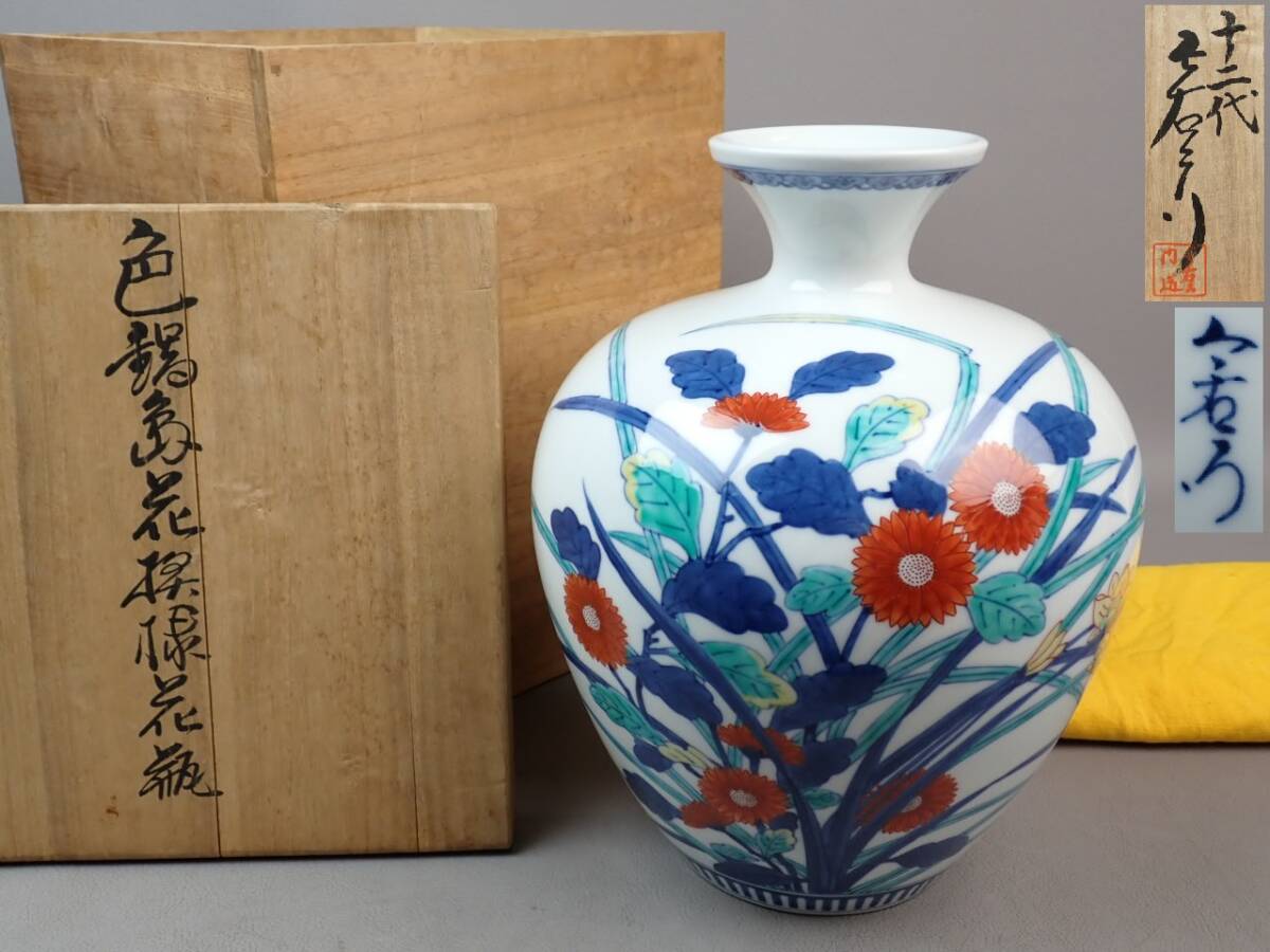 - 【骨董・茶道具】★鍋島焼 十二代 今泉今右衛門★★色鍋島花模様花瓶 go065zgb 花生 花入 花道 華道