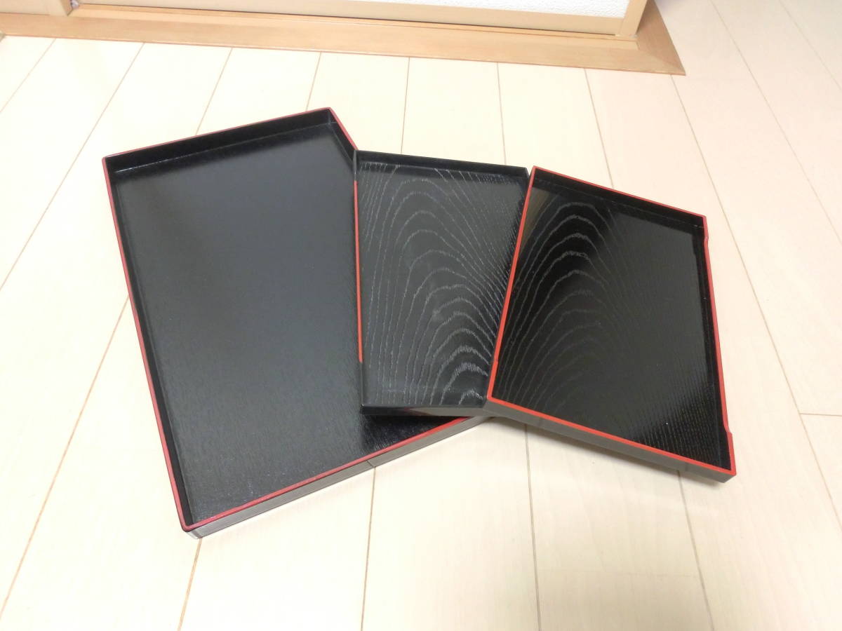 - 長方形 卓上盆3枚セット お寿司のせに♪ 長手木目盆 黒 (大1枚、小2枚)
