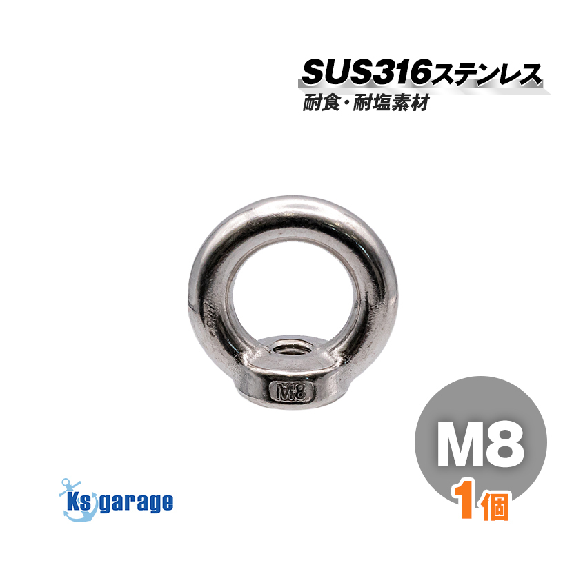 - アイナット M8 線径8mm リング内径20mm SUS316 ステンレス 吊りナット リングナット M8ボルト対応 輪付きナット 船舶用 ステンレス金具