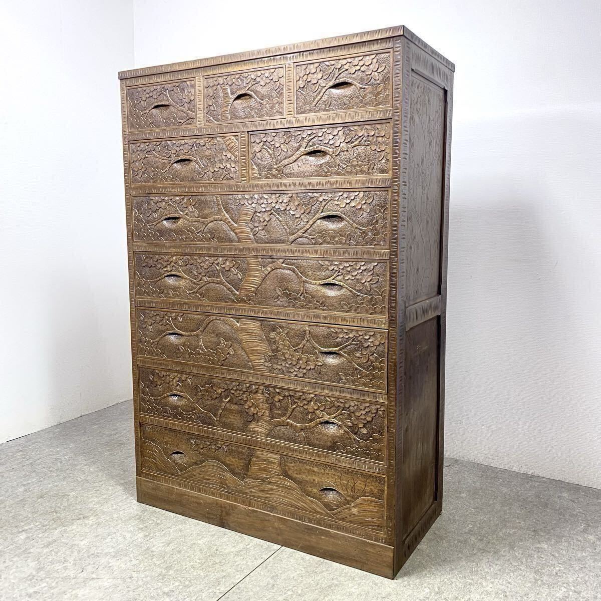 > ★ 軽井沢彫 箪笥 7段 10杯 伝統工芸 桜 彫刻 箪笥 チェスト 衣装箪笥 収納棚 整理箪笥 和箪笥 和家具 民芸家具 タンス ★25090201K