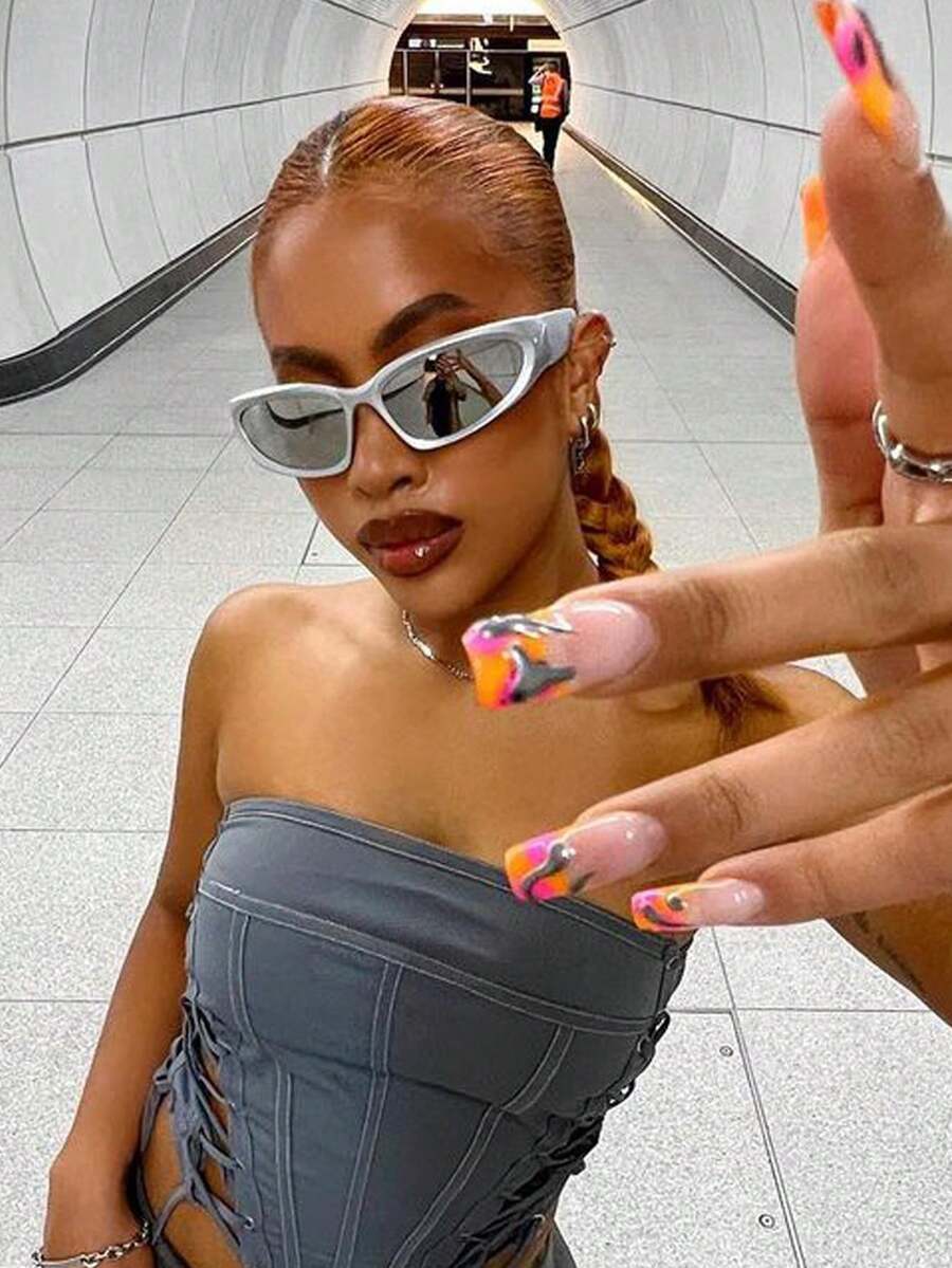 - アクセサリー レディース アイアクセサリー 1個 Y2Kシルバーフレーム ブラック&グレーレンズ スポーツファッショングラス ラッ