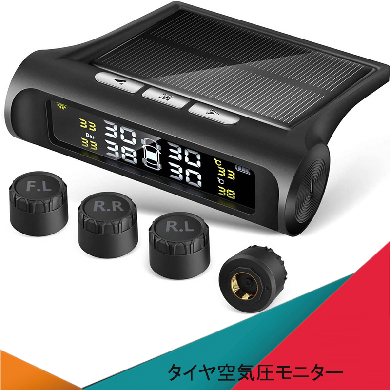 - タイヤ空気圧センサー タイヤ空気圧モニター TPMS気圧温度 即時監視 太陽能USB二重充電 ワイヤレス外部センサー 振動感知