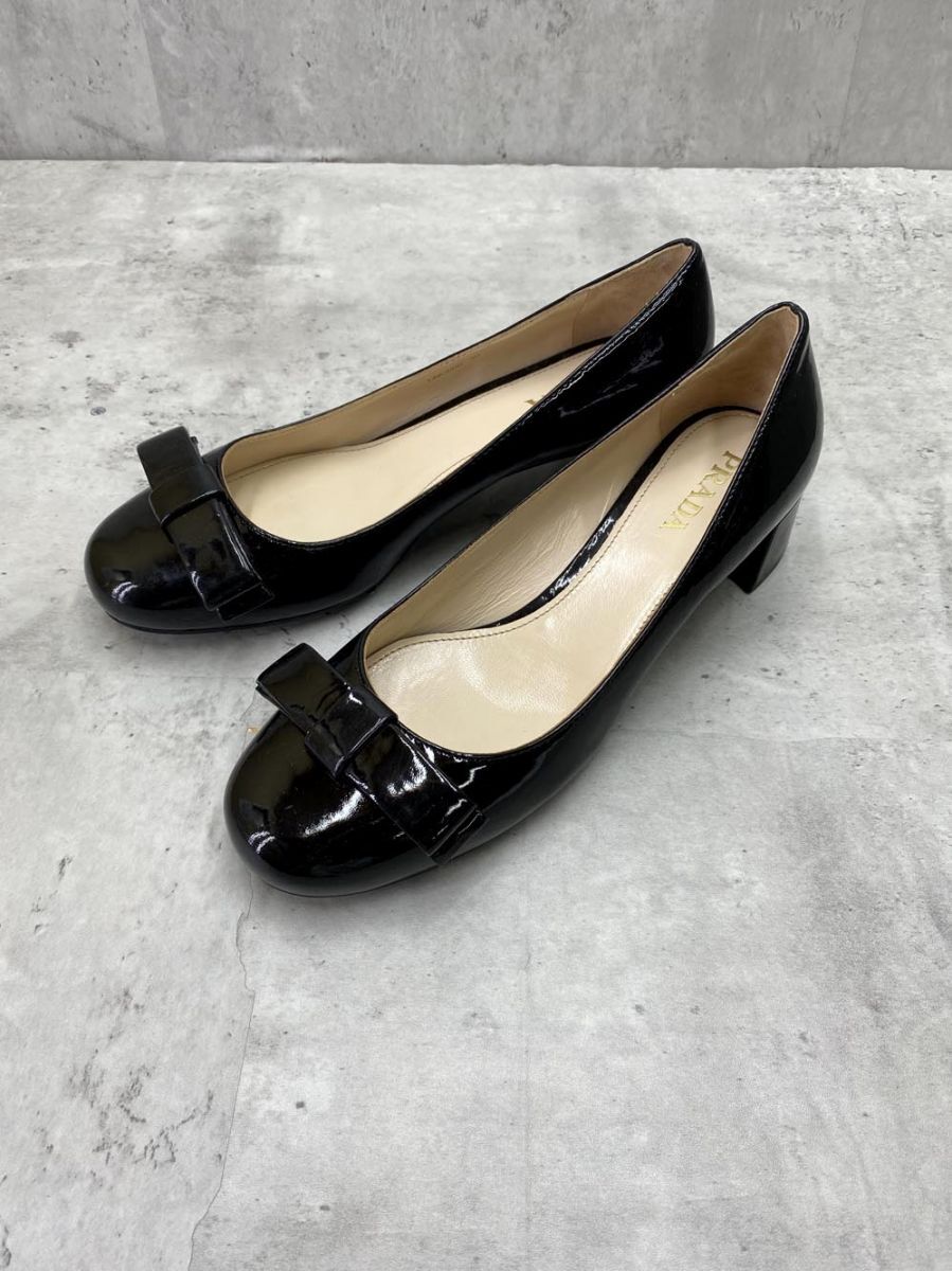 > PRADA プラダ DNC666 リボン エナメル パンプス size38(約25.0cm相当)/黒 ■■◎