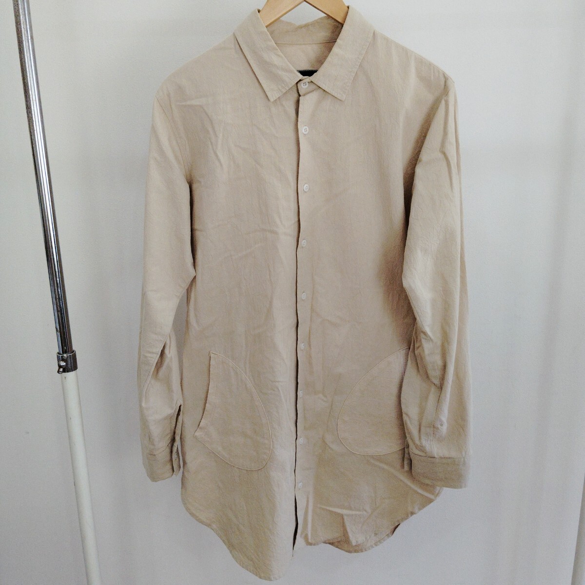 - 0902/3/VIRGO メンズ 長袖シャツ ワッシャー ロング丈 ベージュ