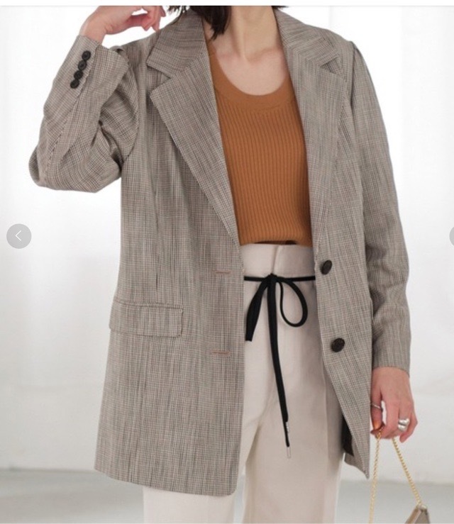 > 定価3.5万 Spick&Spanスピックアンドスパン Visストレッチパフスリーブジャケット◆チェックテーラード IENAジャーナルアローズ ブラウン系