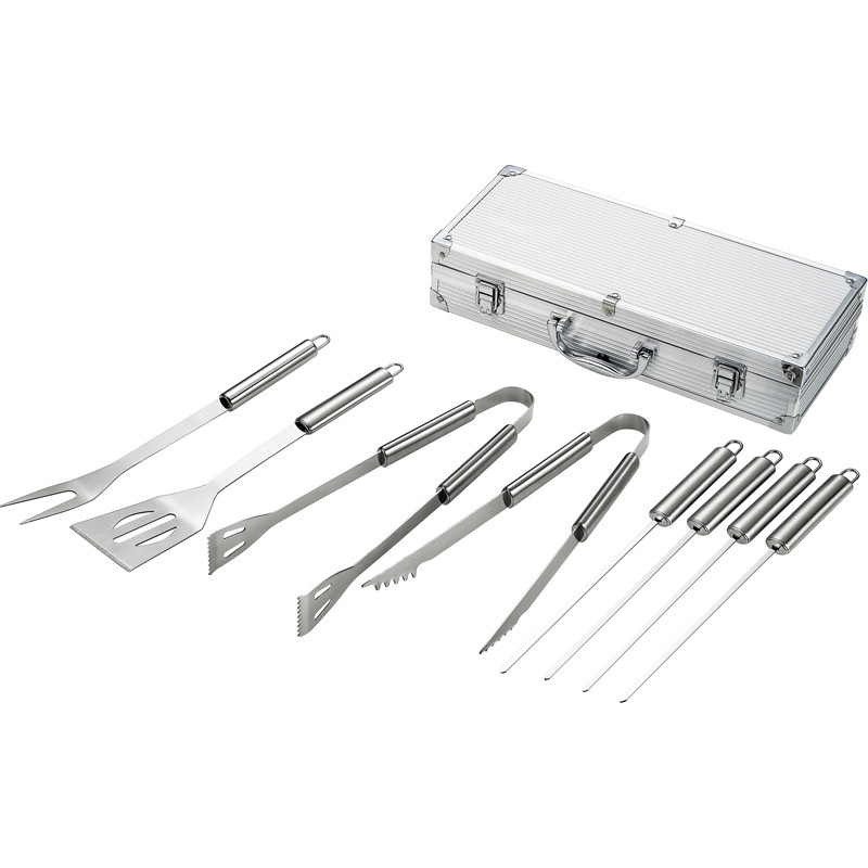 〇注意事項・送料800円が販売価格に含まれています・お取り寄せ商品です。弊社にて手配後、メーカー・卸業者からの直送になります。・まれにメーカー欠品、出荷遅延等が発生致します。問題発生時は別途メールにてご連絡致します。・配送方法の指定、日時指定、置き配、ギフト対応、他商品との同梱配送などは対応できません。・まとめ買いや複数購入の場合は通常より発送に時間が掛かる場合がございます・複数個口の場合、2階以上への搬入ができない場合があります。(その場合は1階での受け渡しとなります)・大型連休、お盆、年末年始などは発送をお休みさせていただく場合がございます・メーカー都合により、パッケージは予告なく変更される場合がございます・梱包用のダンボールはリサイクル品を使用させていただきます。・注文に関するご連絡(注文確定通知・発送通知など)はメールでご案内させていただきます※商品ページの内容について、少しでもご不明な点などがございましたら購入前に一度ご連絡ください〇商品説明あらゆるギフトシーンにおすすめです!アルミケース入りバーベキューセット。ガジェットはステンレス製でサビに強く衛生的。〇商品仕様●内容:ケース:80×370×162mm・ターナー・ピック・炭用トング・食材用トング×各1、串×4規格●無地箱入(380×167×85mm) 1500g●材質:アルミニウム、PVC、MDF、ステンレススチール●加工地:中国(出典:株式会社 八大)