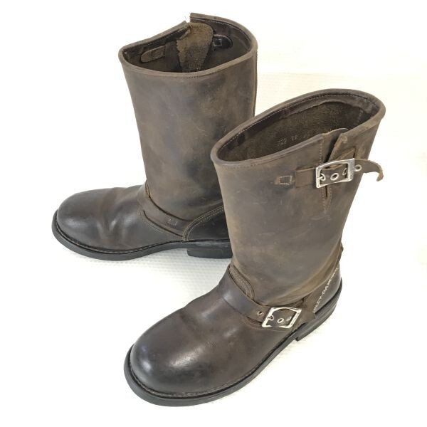 - ハーレーダビッドソン【40/25.0/茶/BROWN】本革/グッドイヤー製法/エンジニア/バイクブーツ/オイル耐性ソール/Shoes/Vintage◆pWB86-4