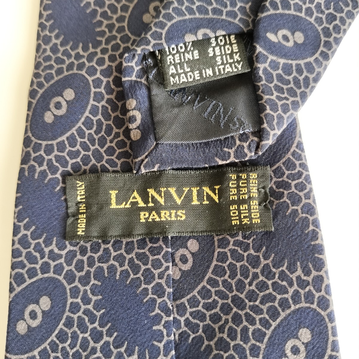 - ランバン(LANVIN)紺グレー網丸模様ネクタイ