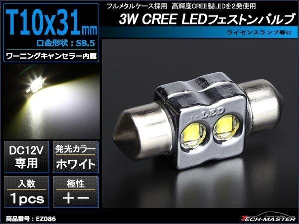 - T10×31mm 32mm LEDフェストン球 ホワイト 1個 CREE 3W LED×2 EZ086