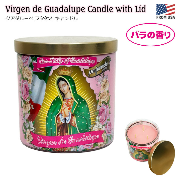 メキシコの守護聖母、グアダルーペの美しいデザインが施されたキャンドルです。
