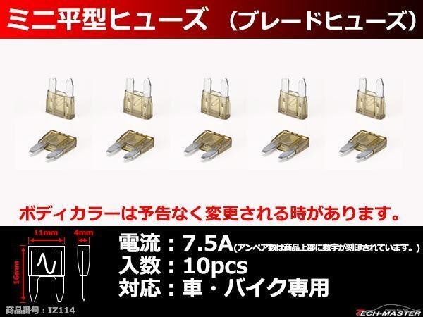- 7.5A ミニ平型ヒューズ 10個入り ブレードヒューズ 車用 IZ114