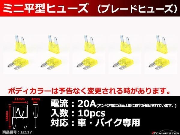 - 20A ミニ平型ヒューズ 10個入り ブレードヒューズ 車用 IZ117