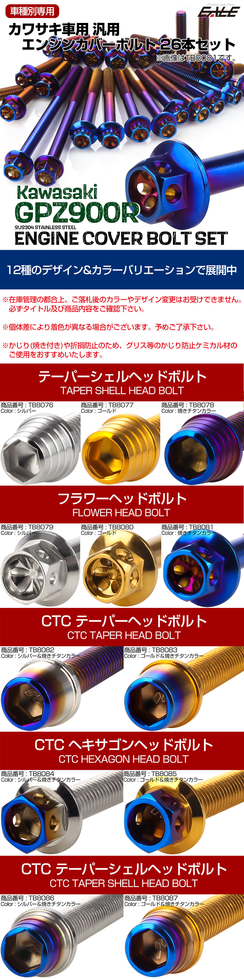 - GPZ900R エンジンカバーボルト 26本セット カワサキ車用 CTCヘキサゴンヘッド シルバー&焼きチタンカラー TB8084