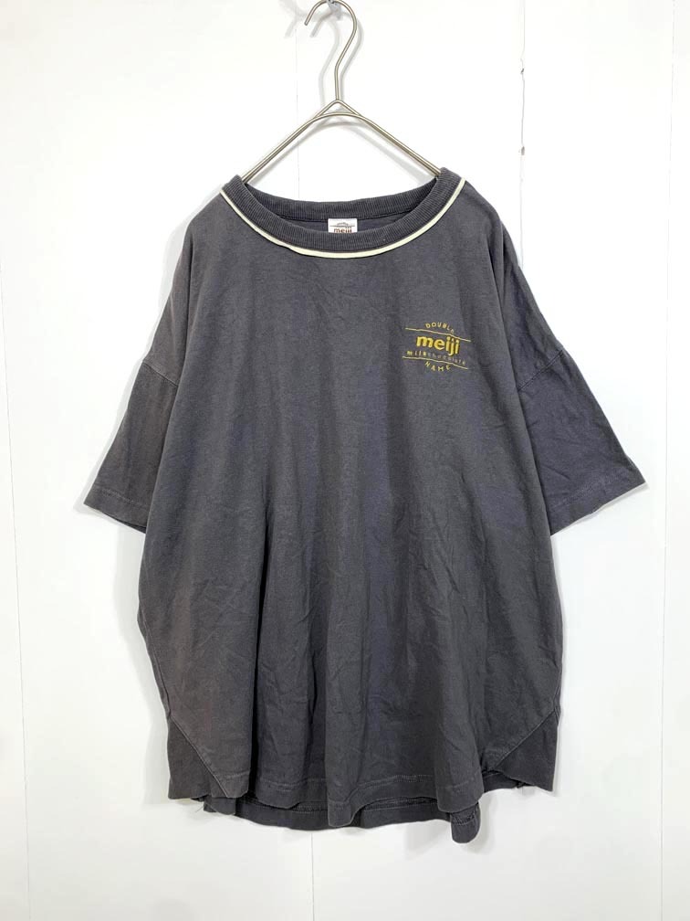 > ゆうパケットOK 明治チョコレート DOUBLE NAME ダブルネーム コラボ 刺繍 半袖 Tシャツ sizeF/チャコール ◇■