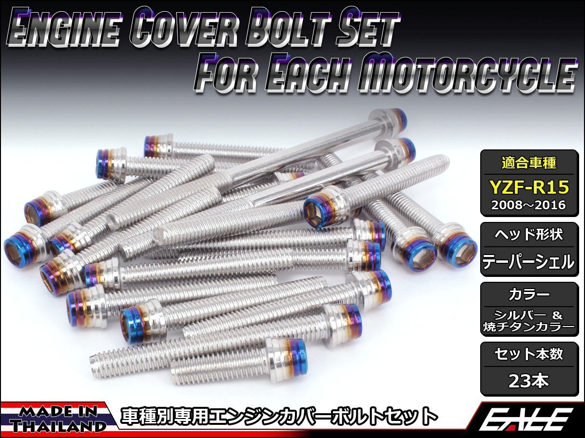 > YZF-R15用 エンジンカバー ボルト23本セット ステンレス製キャップボルト使用 CTCテーパーシェルヘッド シルバー&焼チタンカラー TB7061