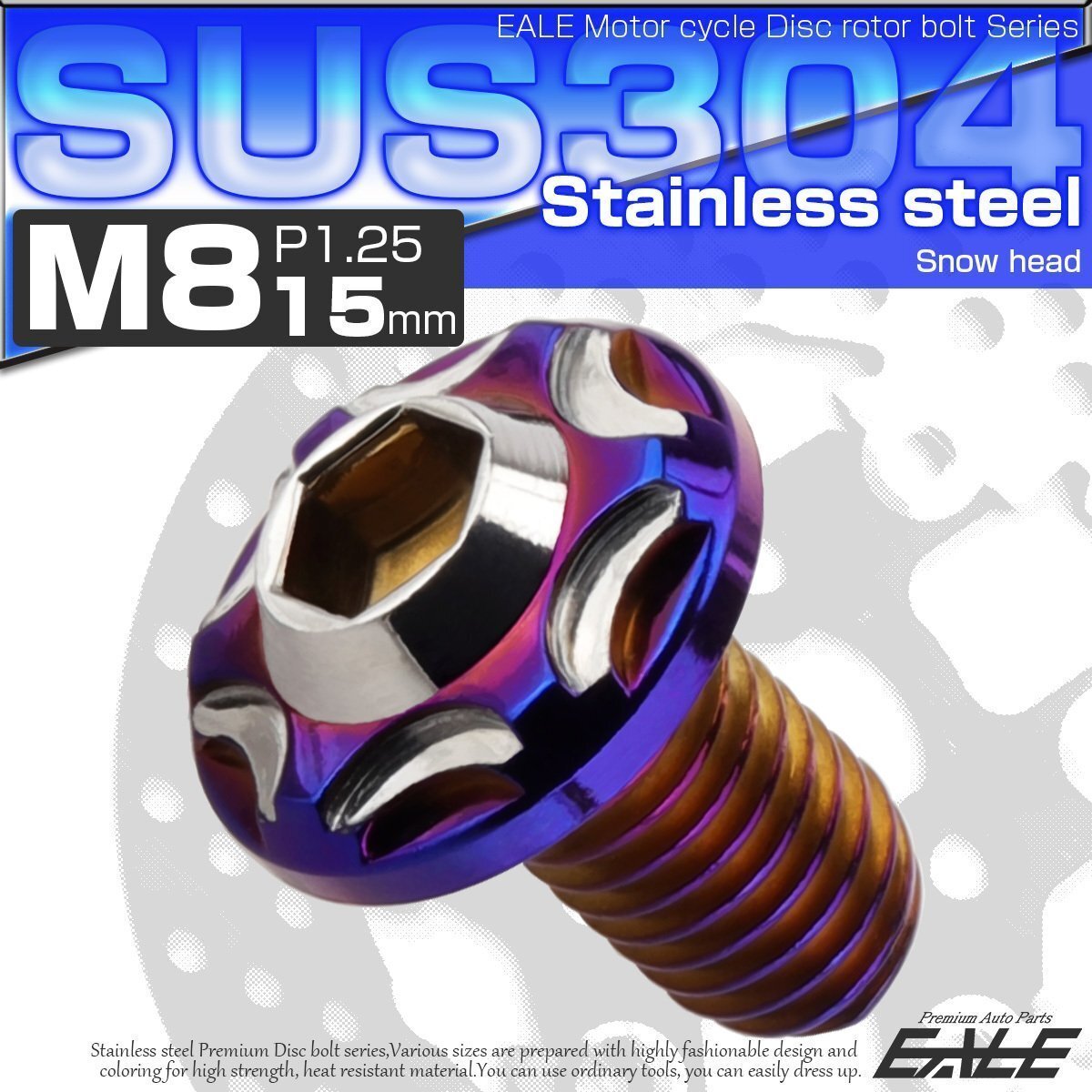 - ヤマハ用 ブレーキ ディスク ローター ボルト M8×15mm P=1.25 SUS304 ステンレス スノーヘッド シルバー/ブルー TD0365