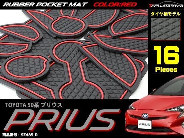 - 50系 プリウス ゴム ポケット マット ダイヤ柄 レッド 16点セット SZ485-R