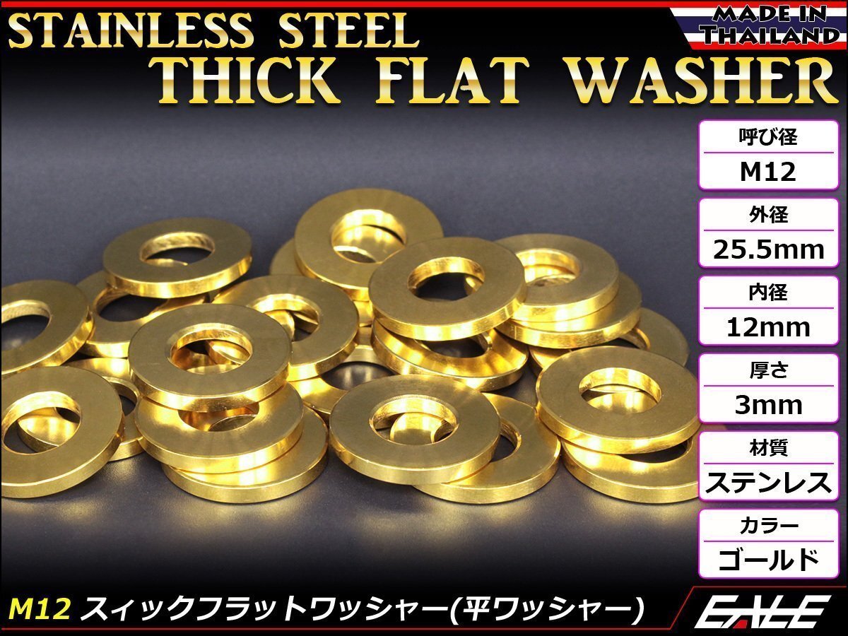 - SUSステンレス M12 シックフラットワッシャー 平ワッシャー カウルやエンジンやフレームなど様々な場所に ゴールド TF0008