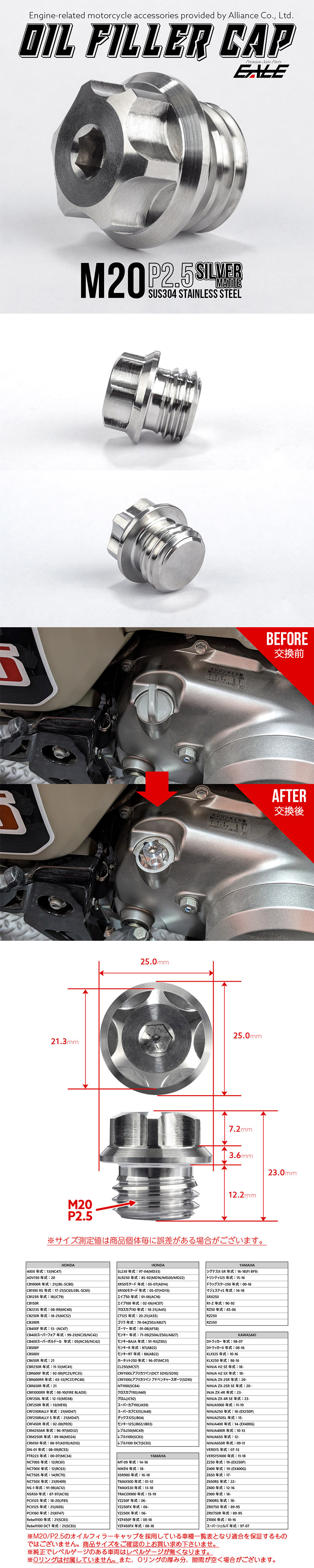 - オイルフィラーキャップ M20 P2.5 六角穴 ステンレス製 5G マットシルバー 汎用 TH0273