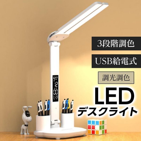> デスクライト 3200mAh 学習机 日付時間温度表示 持ち運び コードレス led 目に優しい テーブルランプ スタンドライト 調光調色 折り畳み