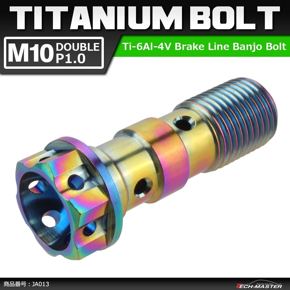 - M10 P1.0 ダブル 64チタン合金 ブレーキライン バンジョーボルト 1本ホース用 焼きチタンカラー ライトカラー 1個 JA013