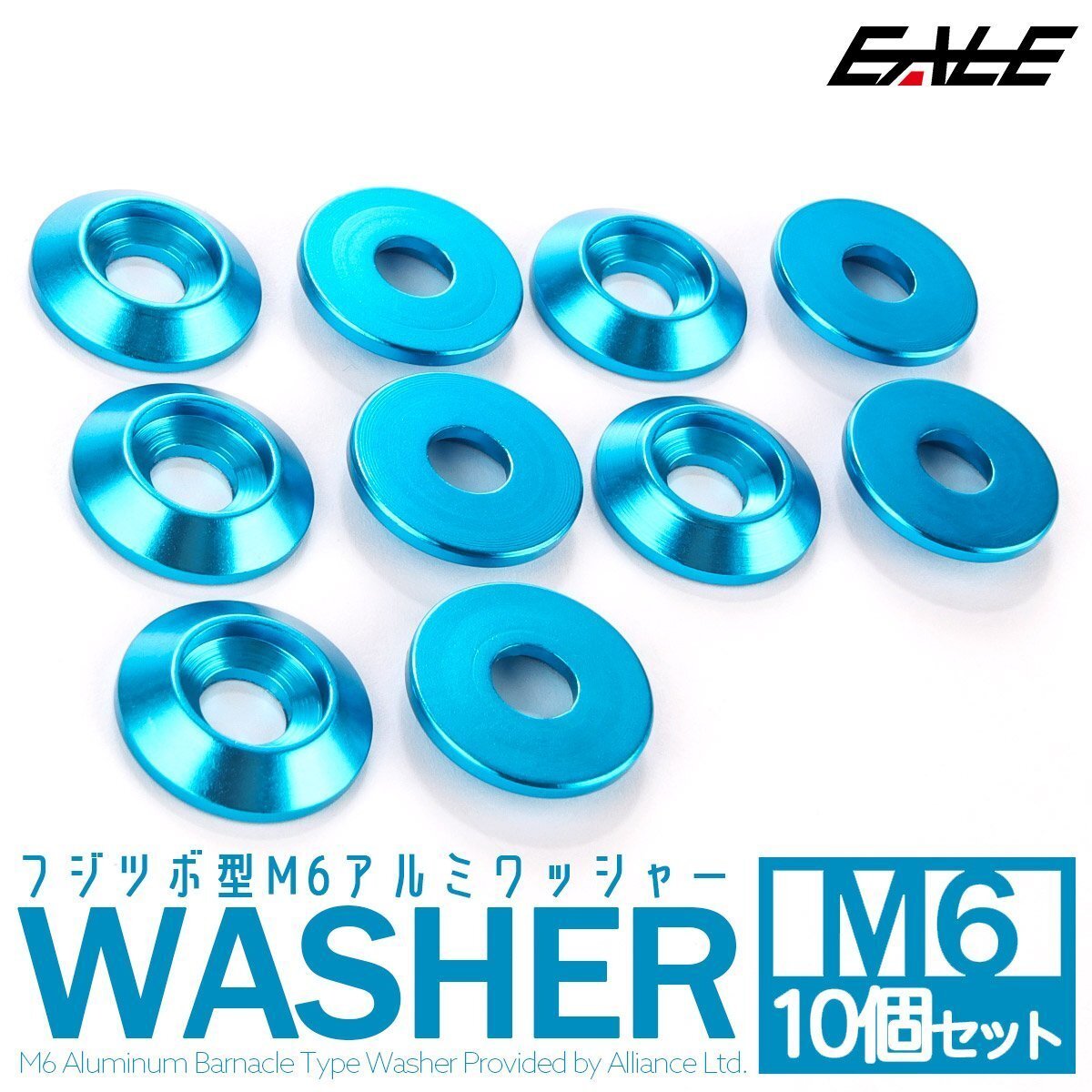 > M6 皿ボルト用 座面枠付きワッシャー フジツボ型ワッシャー ボルトリング アルミ製 アルマイトライトブルー 10個セット TH0706-LB