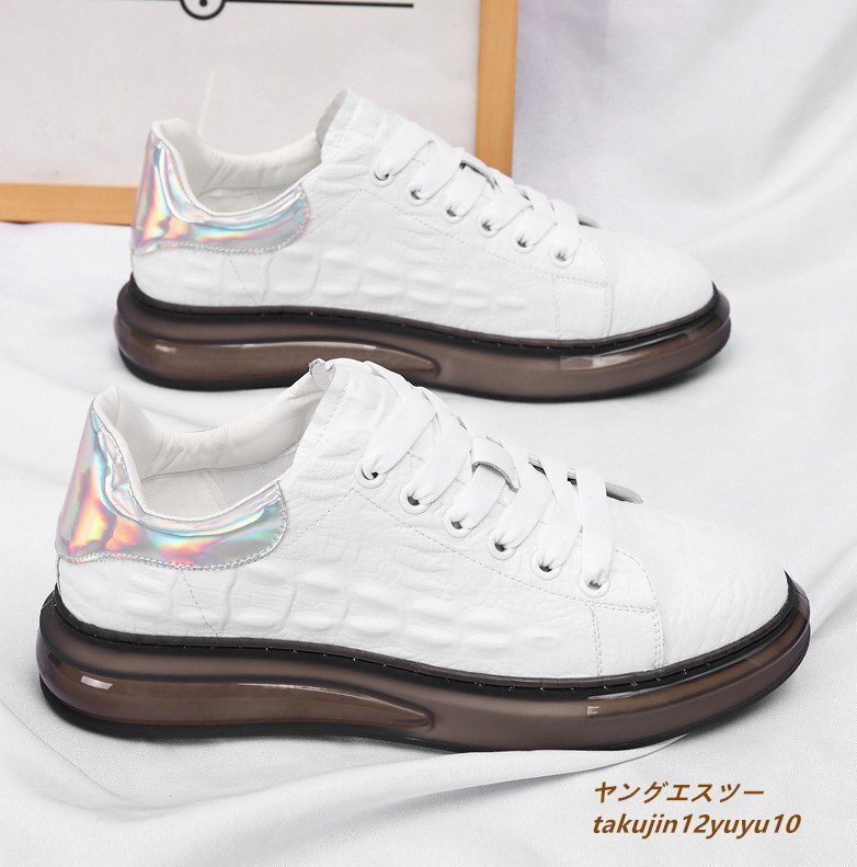 - 高級品 鰐柄 スリッポン メンズ ローファー スニーカー 牛革 レザーシューズ 柔らか 本革 ウォーキングシューズ トレンド 通気性 白 24.0cm